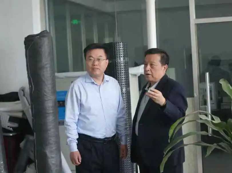 趙校長一行首先參觀了宏祥新材現代化生產車間,實地考察了土工膜、光面膜等核心產品的智能化生產線。在吹膜車間,企業負責人詳細介紹了工藝創新成果及產能規模,并重點展示了 HDPE 土工膜在防滲性能、耐老化測試等方面的技術突破。